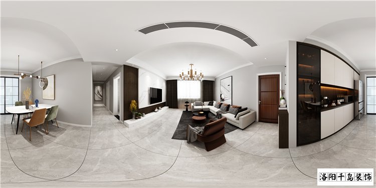 一路踐行心中所想,讓你享受舒適的同時(shí),還不忘家的溫馨,作為一名專(zhuān)業(yè)的洛陽(yáng)裝修公司設(shè)計(jì)師,我覺(jué)得設(shè)計(jì)就應(yīng)該是這樣,在滿(mǎn)足合理的生活空間布局的前提下,充分的利用室內(nèi)空間,讓整個(gè)空間的視覺(jué)效果最完美的呈現(xiàn)在我們的眼前!此戶(hù)型整個(gè)客餐廳空間南北通透,黑白灰三個(gè)色調(diào)完美呼應(yīng),簡(jiǎn)潔的巖板木飾面背景墻搭配一體地臺(tái)的設(shè)計(jì),高級(jí)感滿(mǎn)滿(mǎn)。整個(gè)空間沒(méi)有繁瑣的吊頂,石膏線搭配局部雙眼皮吊頂,客餐廳2個(gè)金色的輕奢風(fēng)吊燈,更好的點(diǎn)綴了整個(gè)空間的美好氛圍,這就是軟裝設(shè)計(jì)帶來(lái)的魅力。