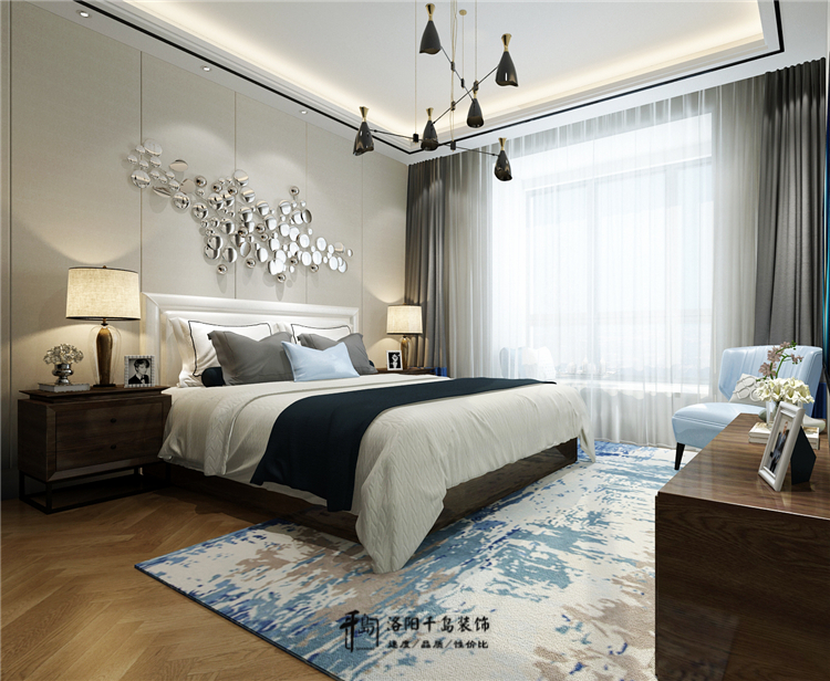 主臥室的床頭背景墻比較有傳統(tǒng)中式的韻味,整體一面滿墻壁畫搭配十分合理,細(xì)細(xì)體會(huì),那真是回味無窮啊!