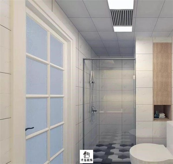 淋浴間和馬桶區(qū),用了玻璃門進(jìn)行隔斷,干濕分離也處理得蠻到位的。墻面也被充分利用起來,做了壁龕設(shè)計,收納點小東西,很方便。
